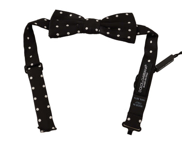 Dolce & Gabbana Black White Polka Dot Silk Adjustable Neck Papillon Bow Tie