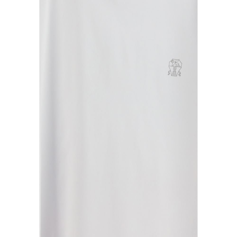 The Brunello Cucinelli cotton T-Shirt you describe is an elegant and simple yet refined garment, perfect for those seeking comfort and style. The monochrome design suggests a clean and versatile look, suitable for various combinations. The contrasting logo on the front, typical of the brand, adds a distinctive touch without being too obtrusive, maintaining elegance. The regular fit ensures a good fit, making it ideal for different body types.
