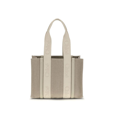 Chloé’s Woody Shoulder Bag by Chloé is crafted from elegant linen with a refined design and distinctive details. Double flat handles are enhanced by contrasting leather extensions on the side panels, while the brand’s iconic monogram adds a touch of class. Inside, a welt pocket offers practicality, while the interior hidden magnetic button closure provides security without compromising style.