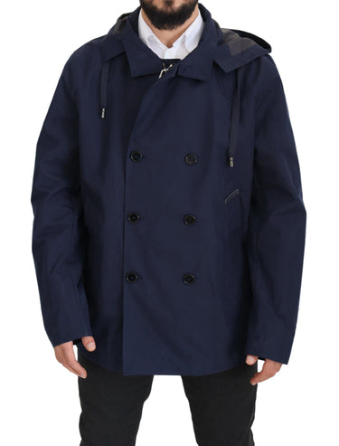 Dolce & Gabbana Blue Hooded Double Breasted Coat Jacket
