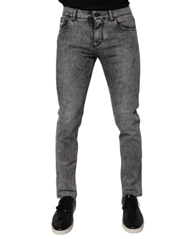 Dolce & Gabbana Dark Gray Washed Cotton Slim Fit Denim Jeans