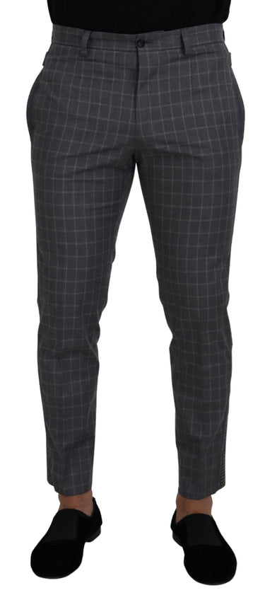Dolce & Gabbana Grey Cotton Checkered Chino Pants