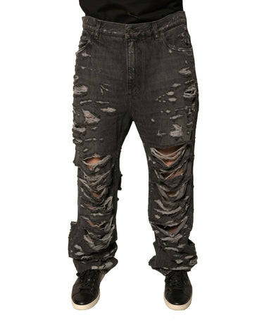 Dolce & Gabbana Gray Tattered Cotton Straight Men Denim Jeans