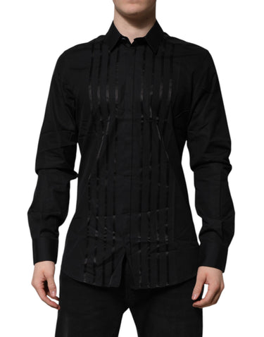 Dolce & Gabbana Black GOLD Long Sleeves Men Formal Dress Shirt