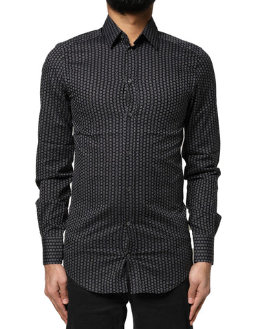 Dolce & Gabbana Black GOLD Patterned Cotton Men Dress Shirt