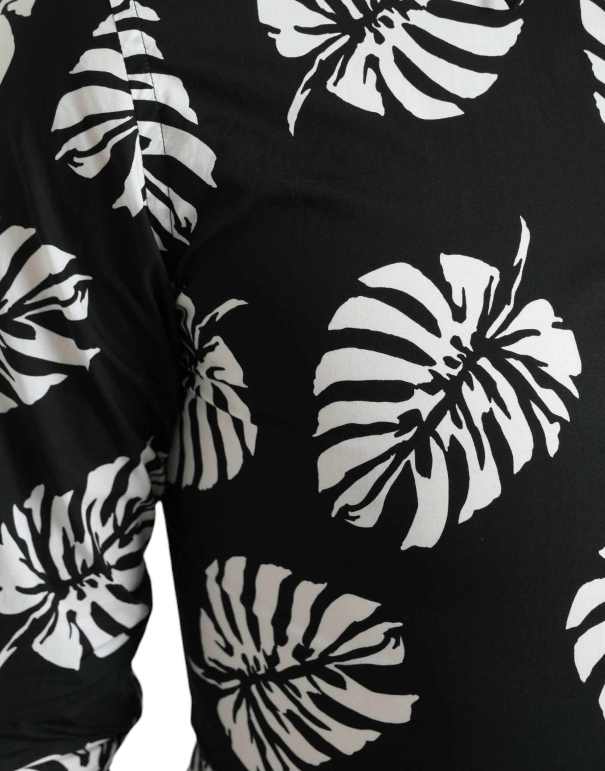 Dolce & Gabbana Black Leaf Cotton Men Formal GOLD Dress Shirt