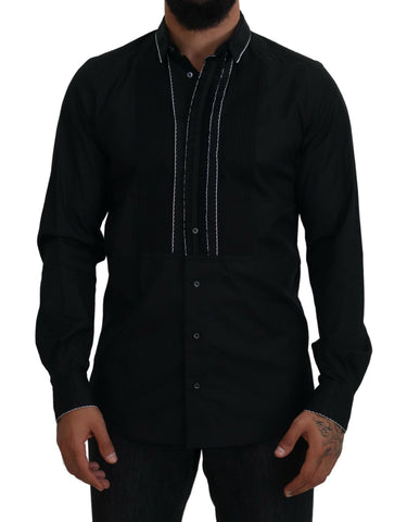 Dolce & Gabbana GOLD Black Tuxedo Slim Fit Cotton Shirt
