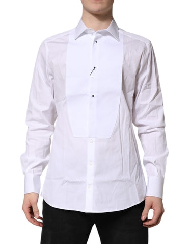 Dolce & Gabbana White Silk Bib Poplin GOLD Men Formal Shirt