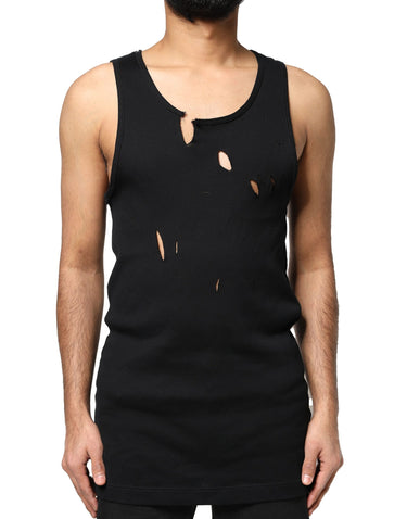 Dolce & Gabbana Black Cotton Rip Style Sleeveless Men Tank T-shirt