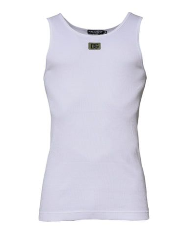 Dolce & Gabbana White Cotton Round Neck Sleeveless T-shirt