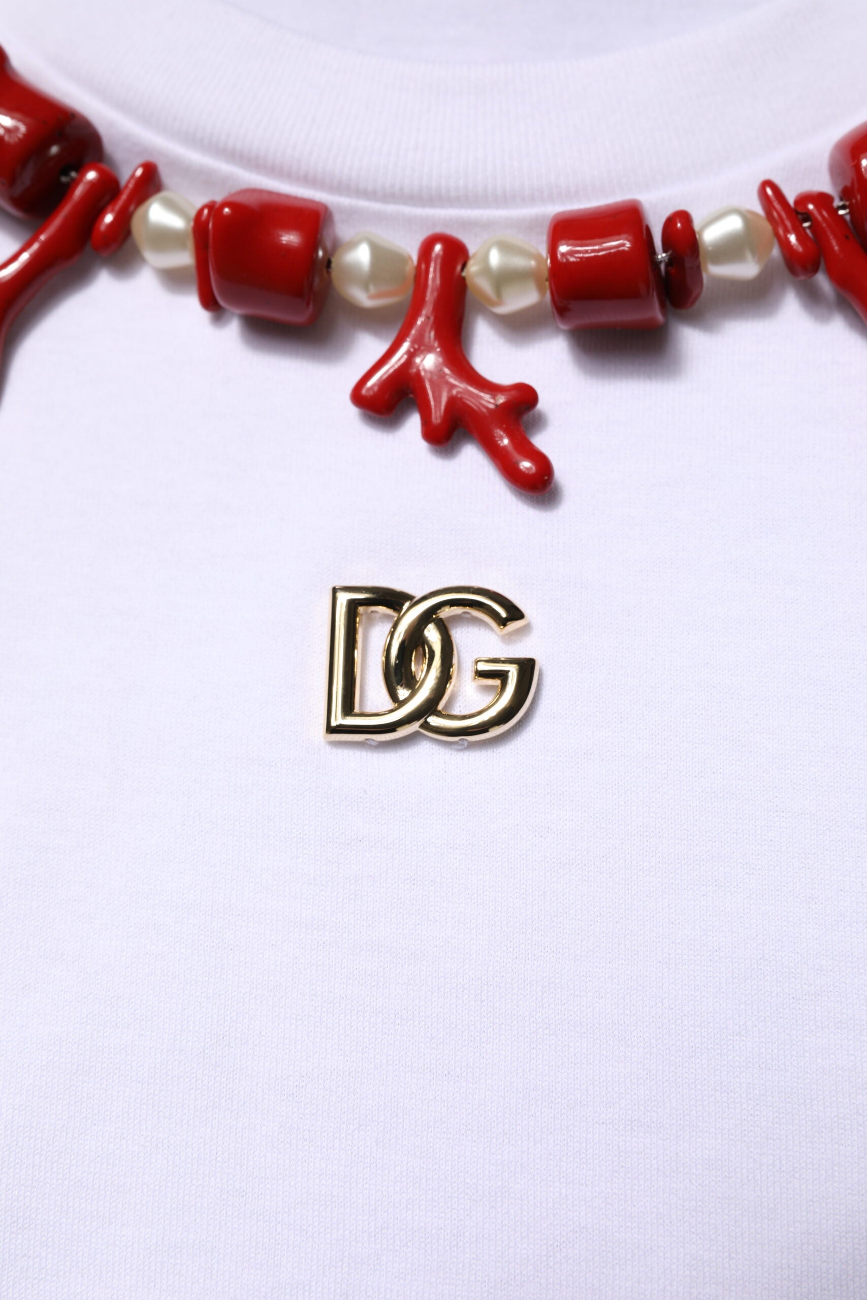 Dolce & Gabbana White Embellished Cotton Crew Neck T-shirt