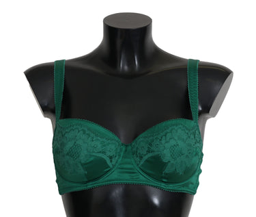 Dolce & Gabbana Green Silk Stretch Floral Lace Bra Underwear