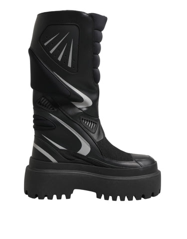 Dolce & Gabbana Black Leather Mid Calf Biker Boots Shoes