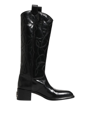Dolce & Gabbana Black Leather Over The Calf Biker Boots Shoes