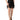 mini skirt features intricate lace detailing with subtle embellishments on sleek black nylon. Designed with a flattering silhouette, it combines feminine sophistication with modern statement style.