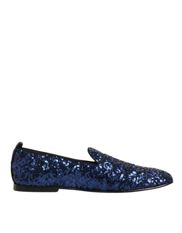 Dolce & Gabbana Blue Sequined Loafers Slippers Men Dress Shoes