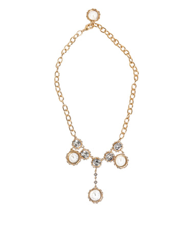 Dolce & Gabbana Gold Crystal Clock Pendant Statement Jewelry Necklace