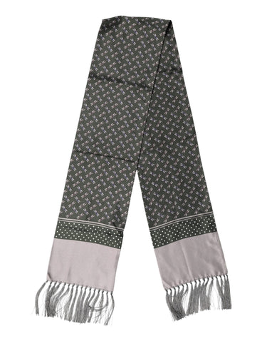 Dolce & Gabbana Gray Patterned Fringes Neck Foulard Scarf