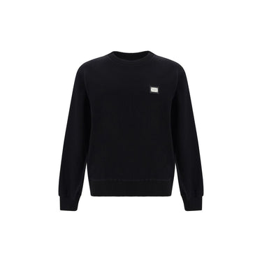 Cotton Sweatshirt by Dolce&Gabbana, ribbed crew neck, ribbed cuffs, ribbed hem, metal hardware with iconic brand D&G monogram engraved and applied at back, monochrome design, regular fit.