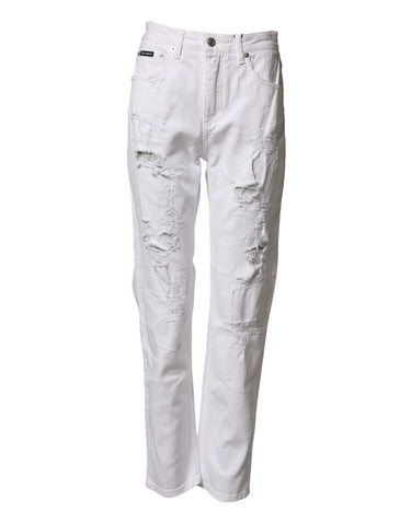 Dolce & Gabbana White Distressed Cotton BOYFRIEND Denim Jeans