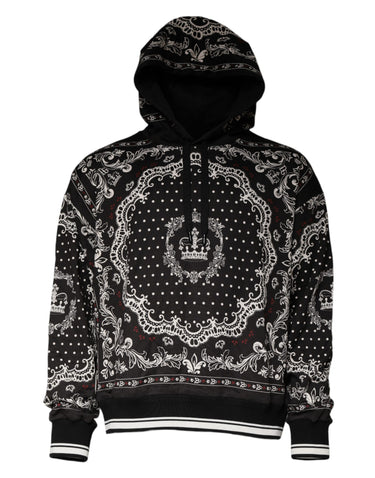 Dolce & Gabbana Black Bandana Print Crown Logo Cotton Hoodie Sweater