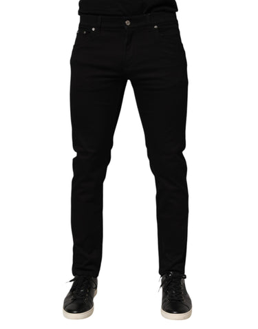 Dolce & Gabbana Black Cotton Blend Skinny Men Trouser Pants