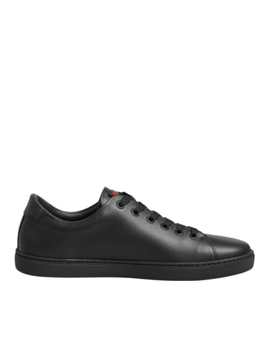 Dolce & Gabbana Black Leather Crystal Heart Low Top Sneakers Shoes