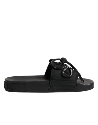 Dolce & Gabbana Black logo print Slides Beachwear Shoes