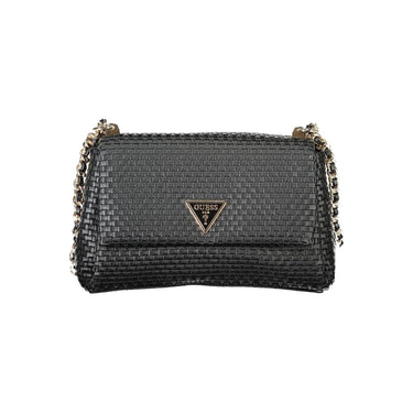 Elevate your accessory game with the ‘Guess Jeans’ Etel Bag — a quintessence of sophistication and functionality. This chic handbag comes in a sleek black hue that lends any outfit an upscale edge. The dual-chain shoulder handles add a touch of glamour, while the well-organized interior, featuring an internal pocket and dedicated card spaces, keeps your essentials neatly arranged. The contrasting details provide an eye-catching pop, and the secure snap closure ensures your valuables stay put. Crafted with sturdy polyethylene, complete with protective feet, this bag is as durable as it is stylish, emblazoned with the iconic Guess logo for that stamp of high fashion.