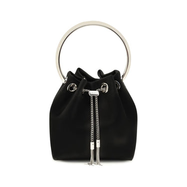 Bon Bon Bucket Bag by Jimmy Choo is an elegant and striking accessory. Made of silk, it features a round metal handle and a chain drawstring closure that adds a sophisticated and contemporary touch. The single interior compartment provides essential space for essentials, making it perfect for evening events and special occasions.
