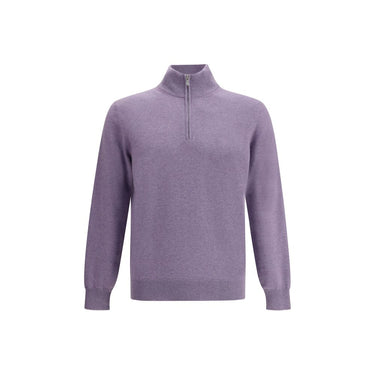 Cashmere Sweater by Brunello Cucinelli combines elegance and functionality in a garment with a refined style. Made of soft, high-quality cashmere, it features a monochrome pattern that enhances the purity of the design. The high collar is complemented by a front half-bust zipper closure, a detail that adds practicality and a sporty touch. The ribbed hem and regular fit ensure comfort and a flawless silhouette. Perfect for casual-chic looks or to add a touch of class to everyday wear.