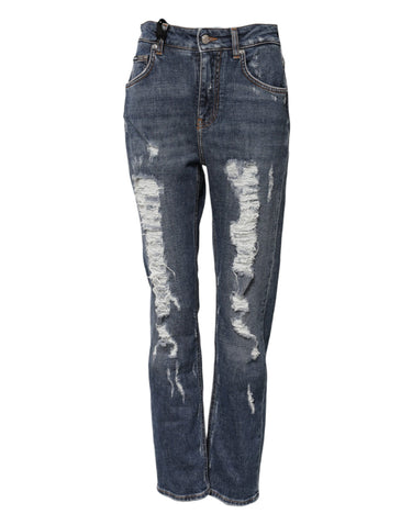 Dolce & Gabbana Blue Cotton Boyfriend Tattered Denim Jeans