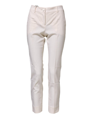 Dolce & Gabbana White Wool Tapered High Waist Pants