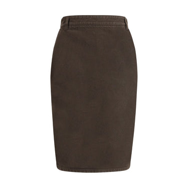 The Denim Pencil Skirt by Saint Laurent combines practicality with contemporary style in an essential piece. Crafted from certified cotton, it features a mid-rise waist with belt loops, a back vent for ease of movement, and a fitted silhouette that flatters the figure. The leather Jacron embossed with Saint Laurent Paris adds a distinctive, refined touch, making the skirt versatile for both casual and polished looks.