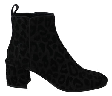 Dolce & Gabbana Black Leopard Short Boots Zipper Shoes