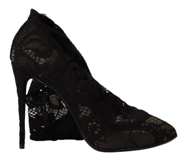 Dolce & Gabbana Black Stretch Socks Taormina Lace Boots Shoes