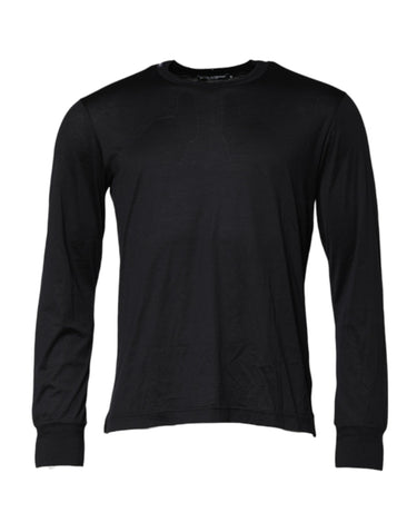 Dolce & Gabbana Dark Blue Silk Crew Neck Men Pullover Sweater