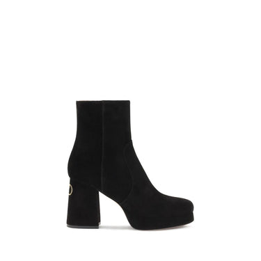 Fawcette calfskin Ankle Boots by Valentino Garavani combine elegance and character in a contemporary design. The Signature VLogo detail with antique-effect brass finish adds a distinctive and refined touch. Platform and wide heel, both wrapped in calfskin, ensure comfort and stability without sacrificing style. The side zipper closure ensures practicality and a perfect fit, making these ankle boots a must-have for those who like to combine quality and iconic fashion.